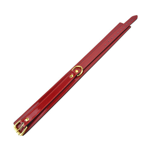 Rødt, glansfuldt bondage halsbånd med blød sort ruskindsforing
