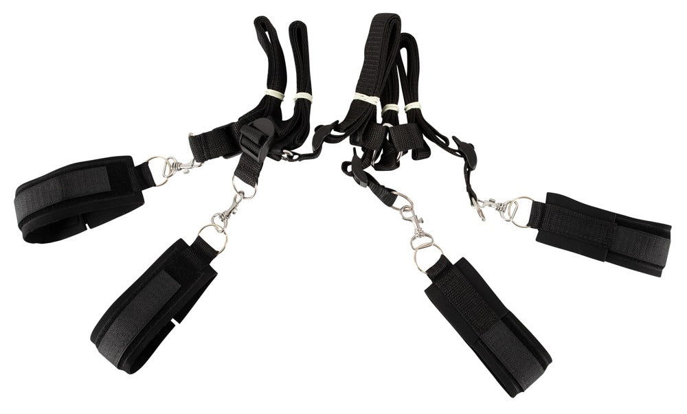 Dette sengestrop sæt indeholder alt, hvad du behøver for at forvandle din seng til et professionelt bondage-legeplads – helt uden sengeposter eller ramme.
