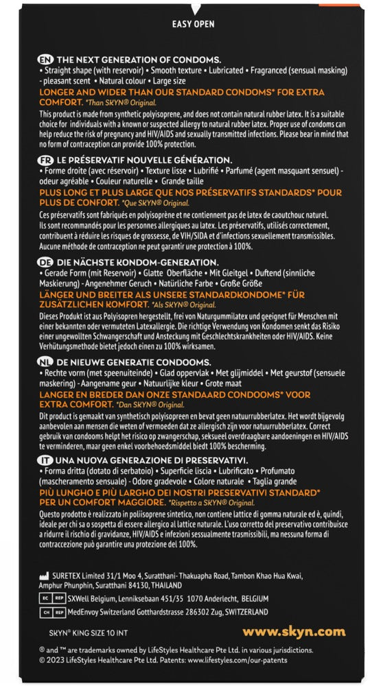 Fremstillet af Skynfeel™ polyisopren, et innovativt latexfrit materiale, der er blødere, mere elastisk og utrolig hudlignende. Resultatet er en næsten “nøgen” følelse, samtidig med at sikkerheden forbliver på højeste niveau.