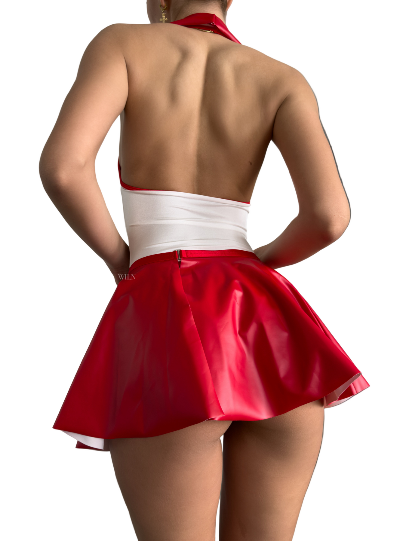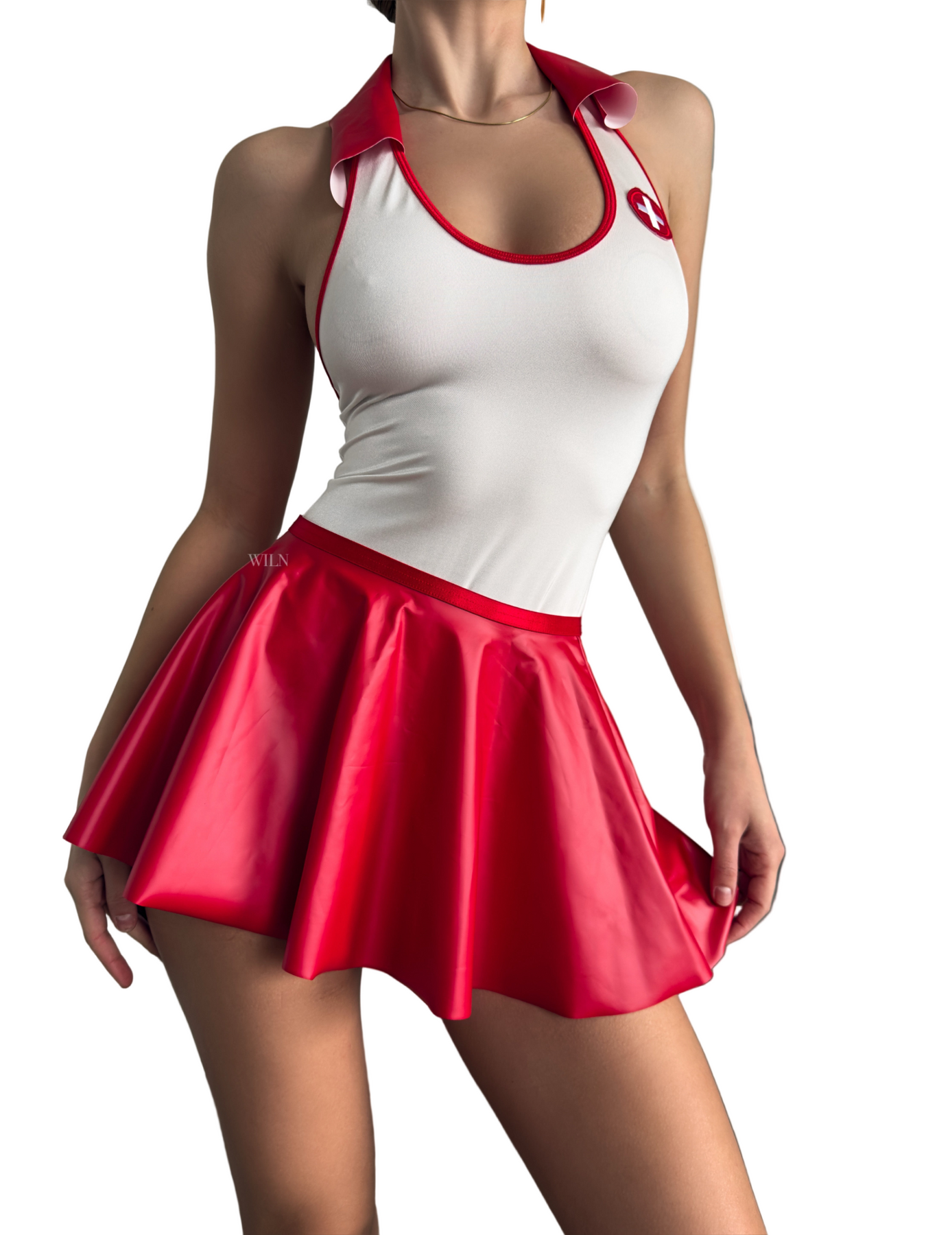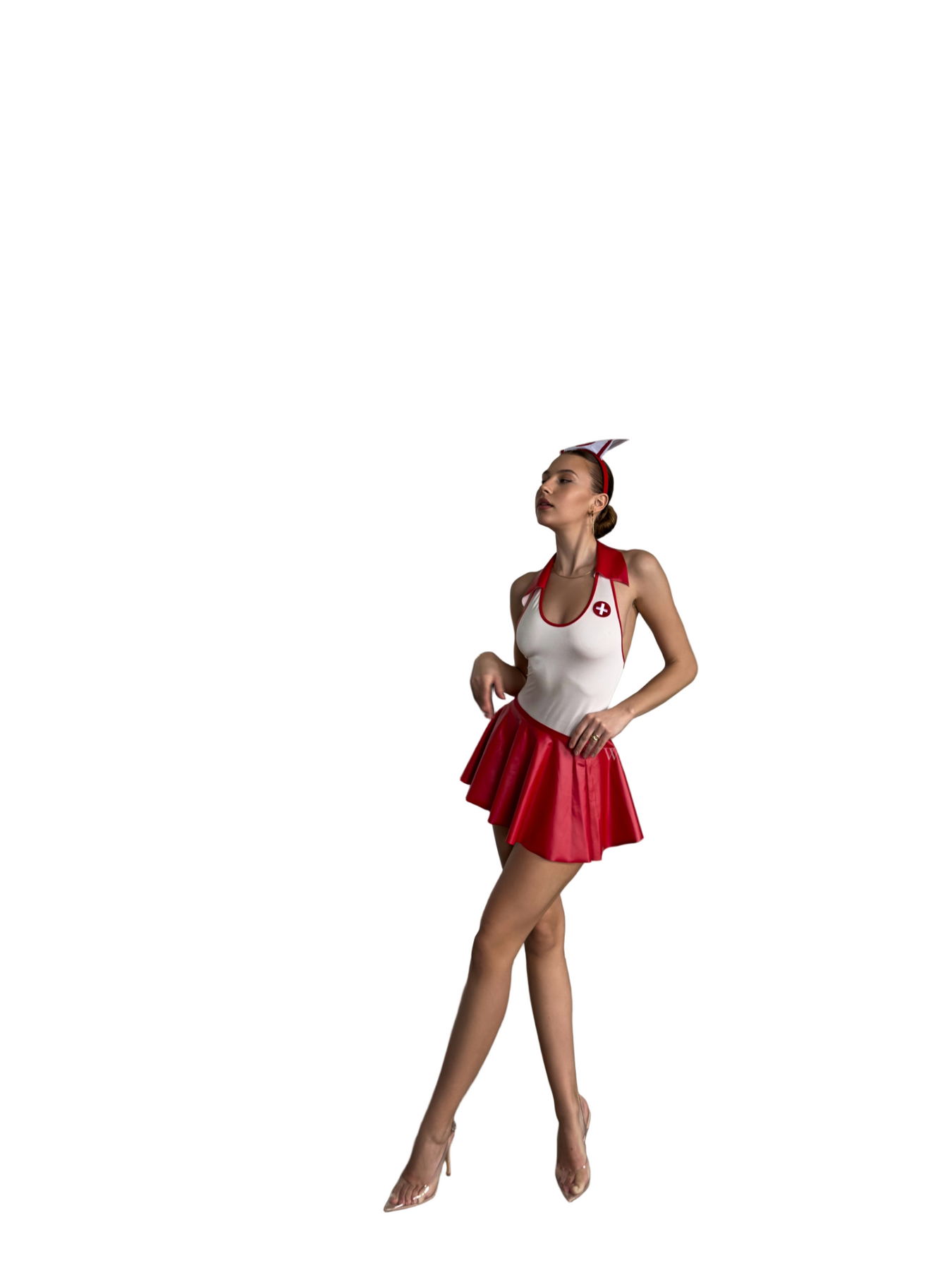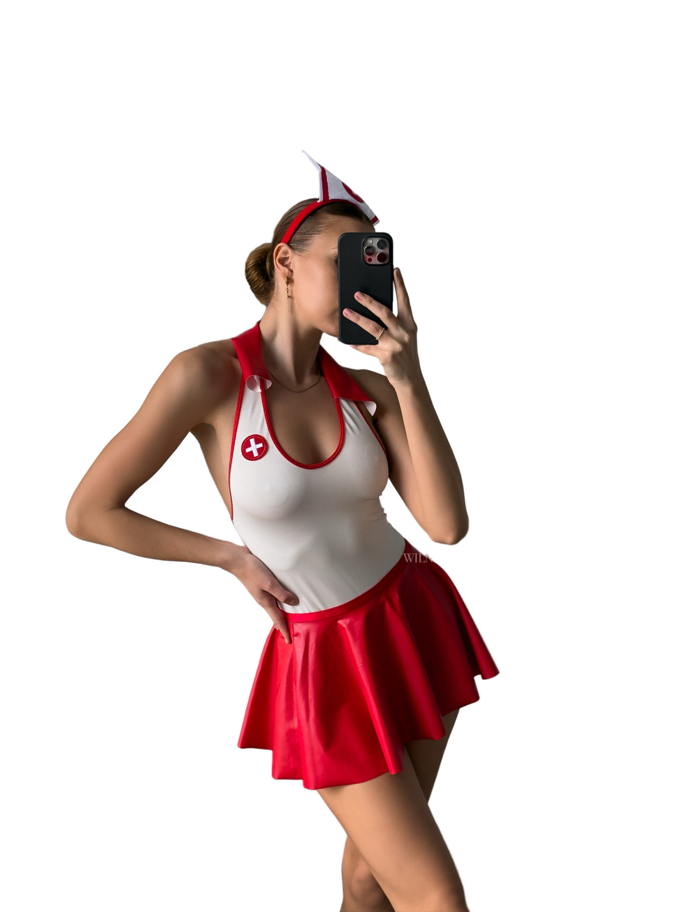 HEALER er designet til aftener, hvor fantasien får lov at styre tempoet. Dette dristige, rød-hvide lingerisæt er inspireret af klassiske nurse-uniformer – men med en langt mere sensuel og moderne fortolkning.
