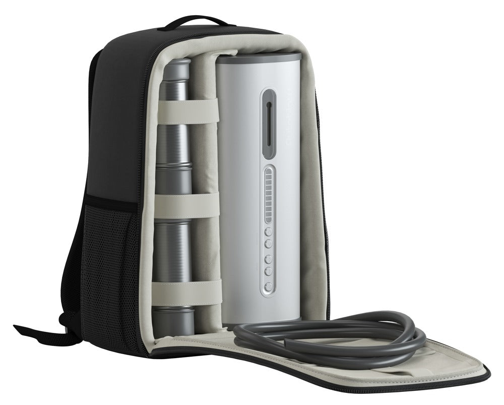 Der medfølger tre udskiftelige cylindre og bløde sleeves i forskellige størrelser, så du kan vælge den pasform, der føles mest naturlig. Alt opbevares diskret i den medfølgende rygsæk, så du kan tage den med eller gemme den væk uden at vække opmærksomhed.
