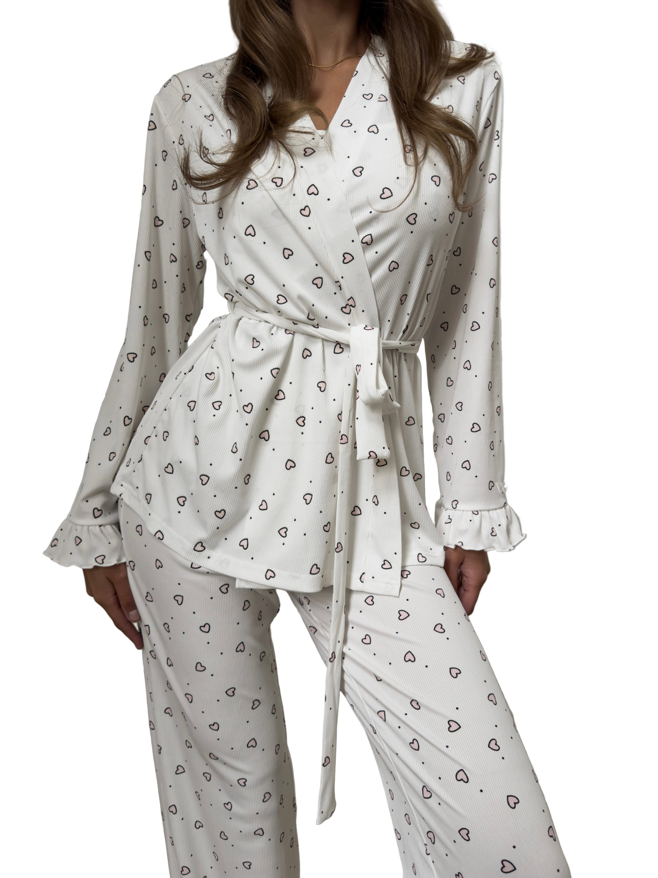 Sæt inkluderer: Top, bukser og morgenkåbe