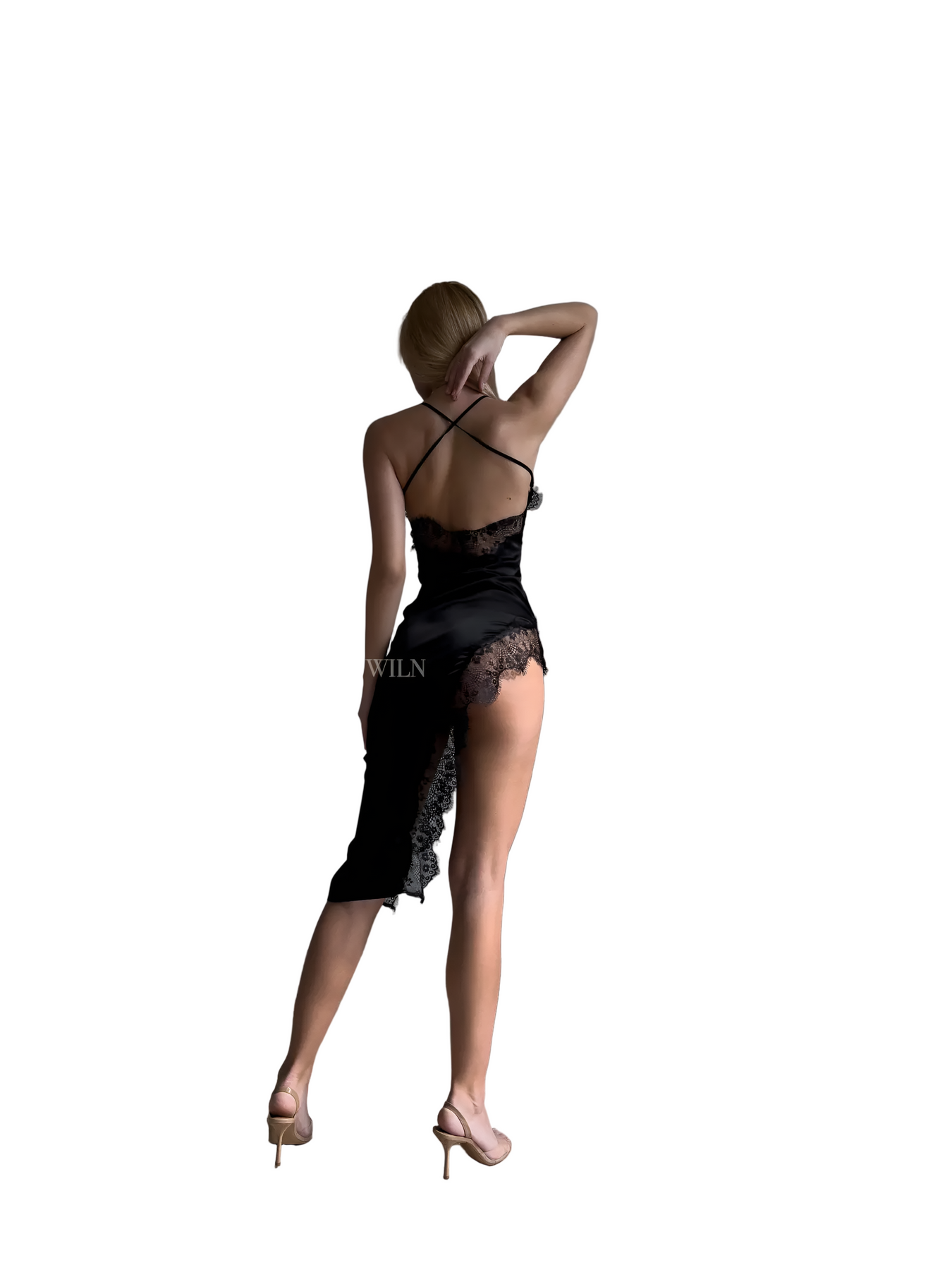 PARADOX Night Dress – Sensuel Satin Chemise med Blonde & Cowl Neck