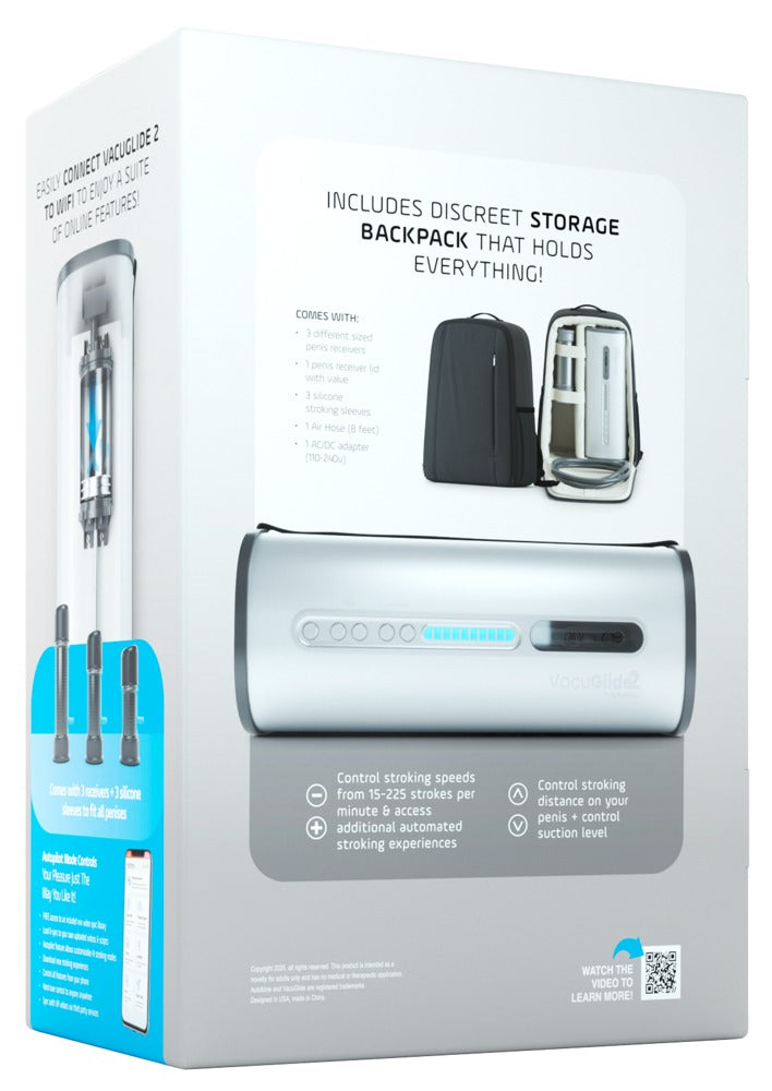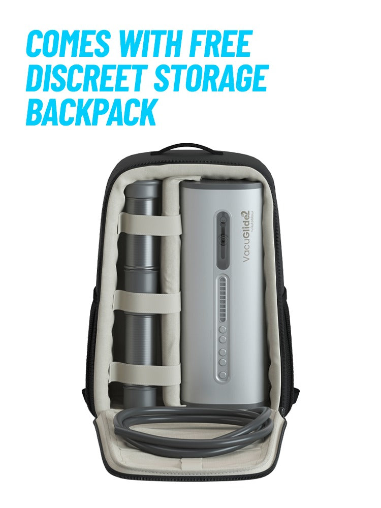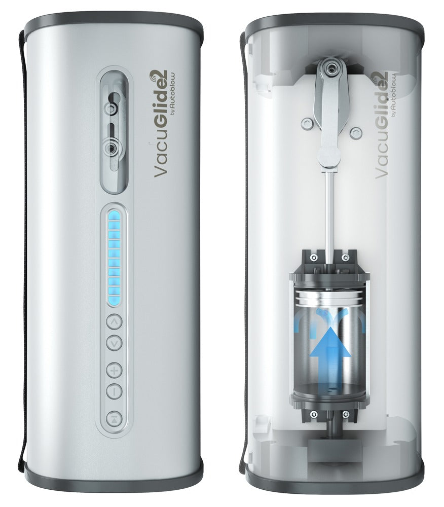 VacuGlide 2 er strømforsynet for stabil, uafbrudt brug og leveres med flere cylindre og sleeves, så pasformen altid føles rigtig.