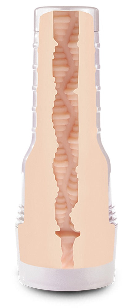 Indvendigt finder du en spiralformet nydelseskanal med fine prikker og varierende struktur, designet til jævn, rytmisk stimulation. Materialet er fremstillet i Superskin (TPE), som føles blødt, hudlignende og fleksibelt, og som tilpasser sig naturligt under brug. En diskret signaturdetalje ved åbningen fuldender det eksklusive udtryk.